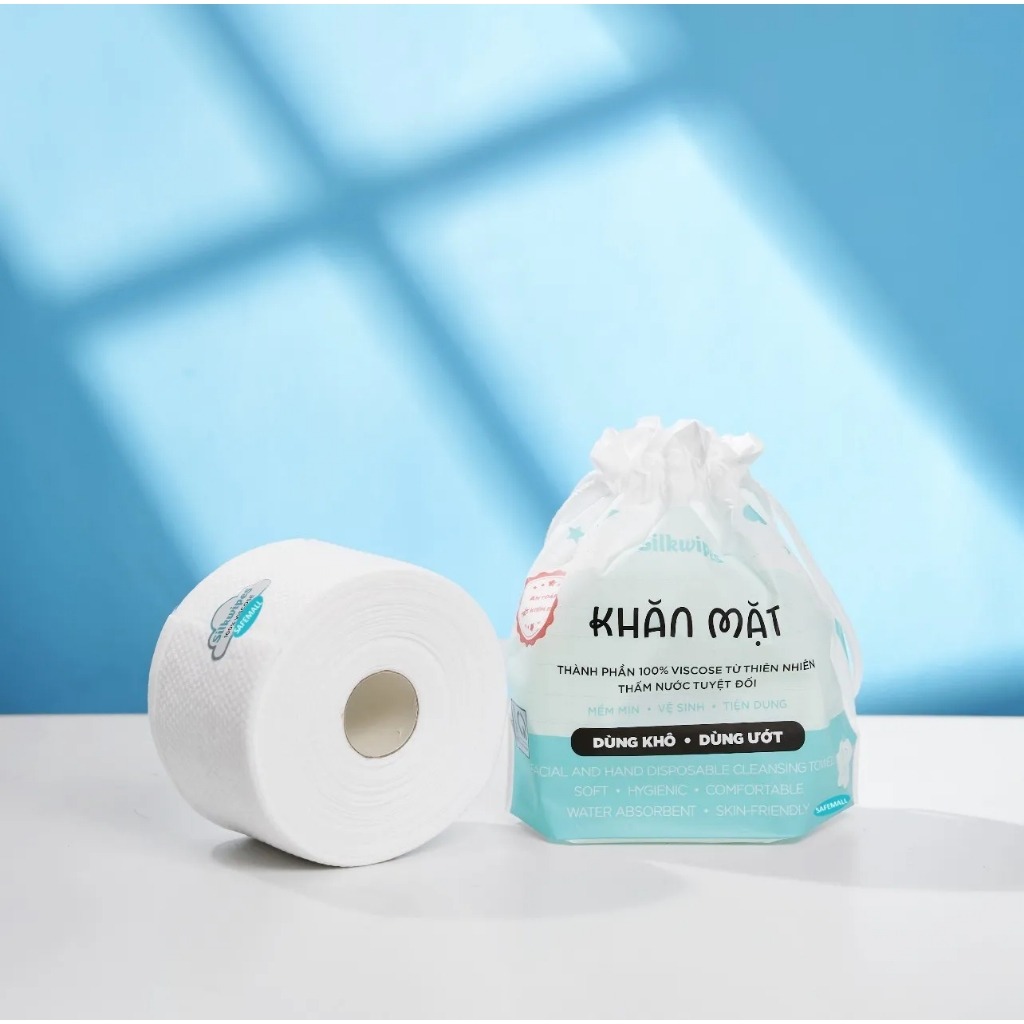 Khăn mặt khô là loại khăn được đóng cuộn dài. Người dùng có thể kéo từng tờ rất dễ dàng. Thiết kế này giúp tiết kiệm thời gian. Bạn có thể dùng ở bất cứ đâu. Khăn đảm bảo vệ sinh vì chỉ dùng một lần.