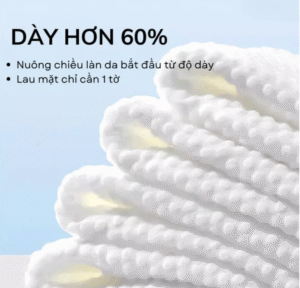 Mỗi tờ khăn đều dày, dai, thấm hút tốt, không để lại xơ bông – phù hợp cho da nhạy cảm và da mụn.